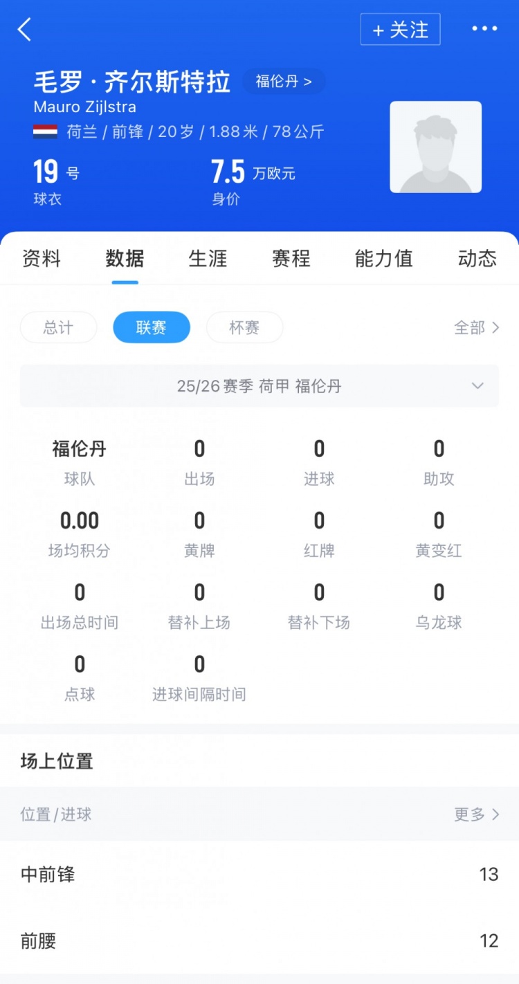 毛罗-皆尔斯特拉,出说念于奈梅亨青训,本年1月转会到福伦丹效率,上赛季在青训队和一线队共出战28场,打进17球助攻7次,随队得到上赛季荷乙冠军,现在德回身价.75万欧。