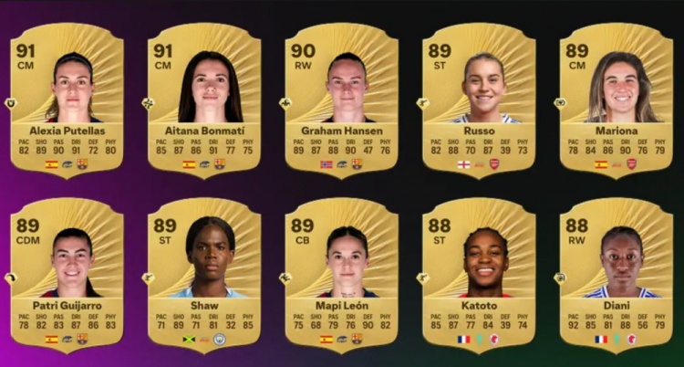 9月9日讯 《EAFC26》上线在即,本作公布了女足评级最高的10名球员,巴萨女足占据半数且包揽前三名。