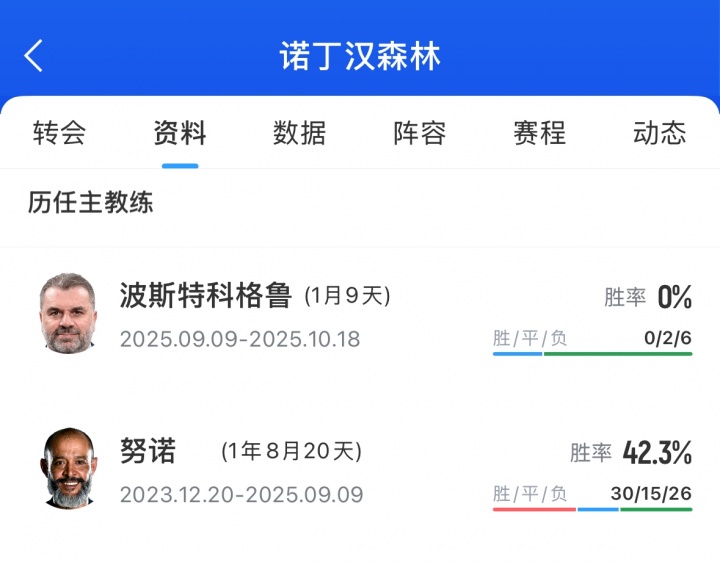 本赛季英超开赛8轮,诺丁汉丛林先后罢免了努诺和波斯特科格鲁,其中波斯特科格鲁甚而只带队39天就惨遭下课。诺丁汉丛林当今8轮5分位列英超左迁区,距离安全区差2分。