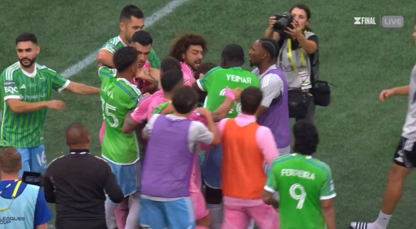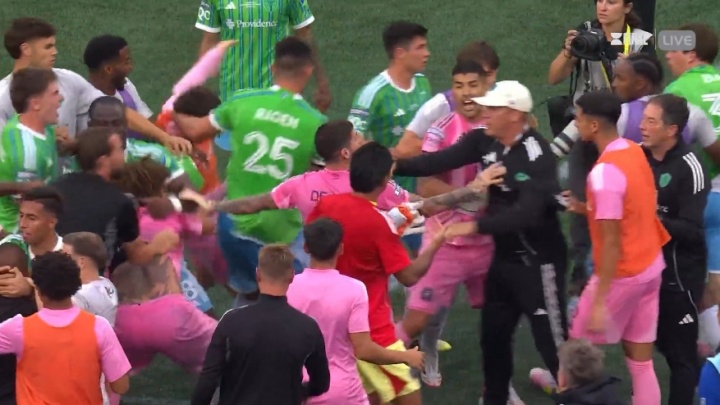 比赛章程后迈阿密球员和对方球员还有责任主说念主员发生冲破,拳脚相向!