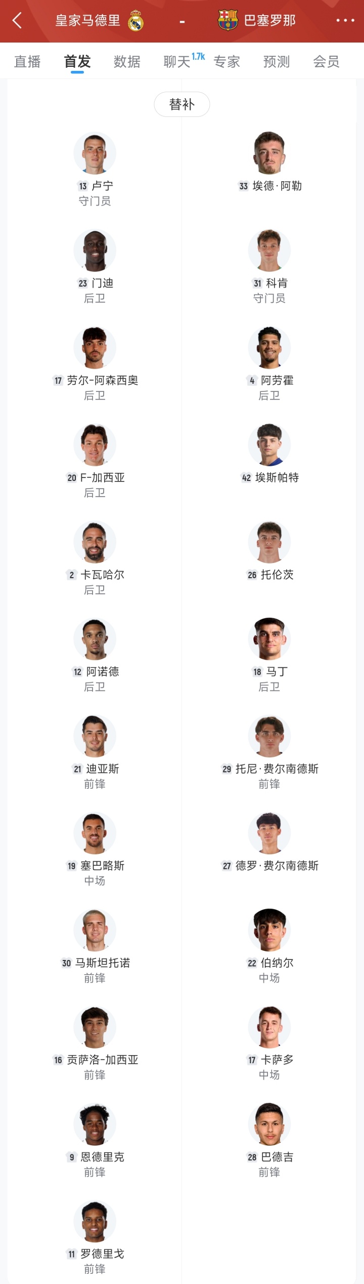 10月26日讯 万众瞩蓄意西班牙国度德比皇马vs巴萨行将打响,两队仍是公布了首发声势。由于多东谈主受伤,巴萨的替补席略显寒酸。