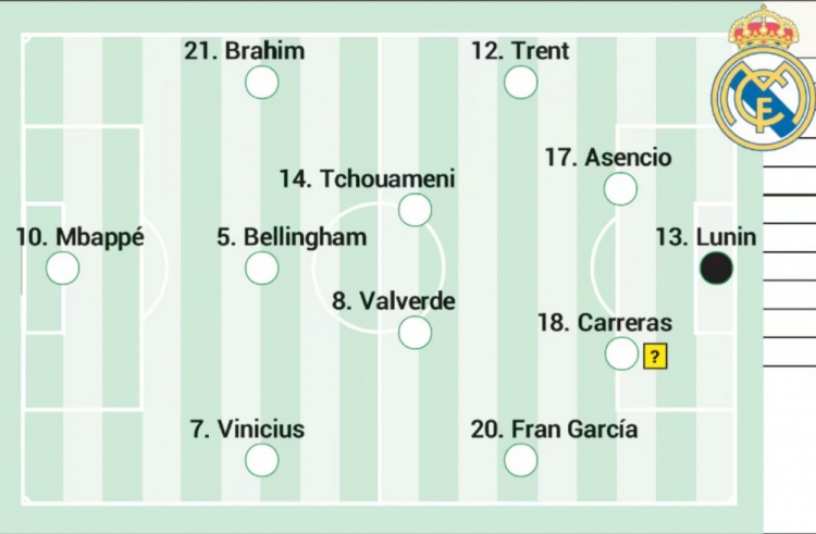 西班牙媒体《阿斯报》揣摸了皇马此役的首发声威,姆巴佩领衔,维尼修斯、迪亚斯、阿诺德在列。