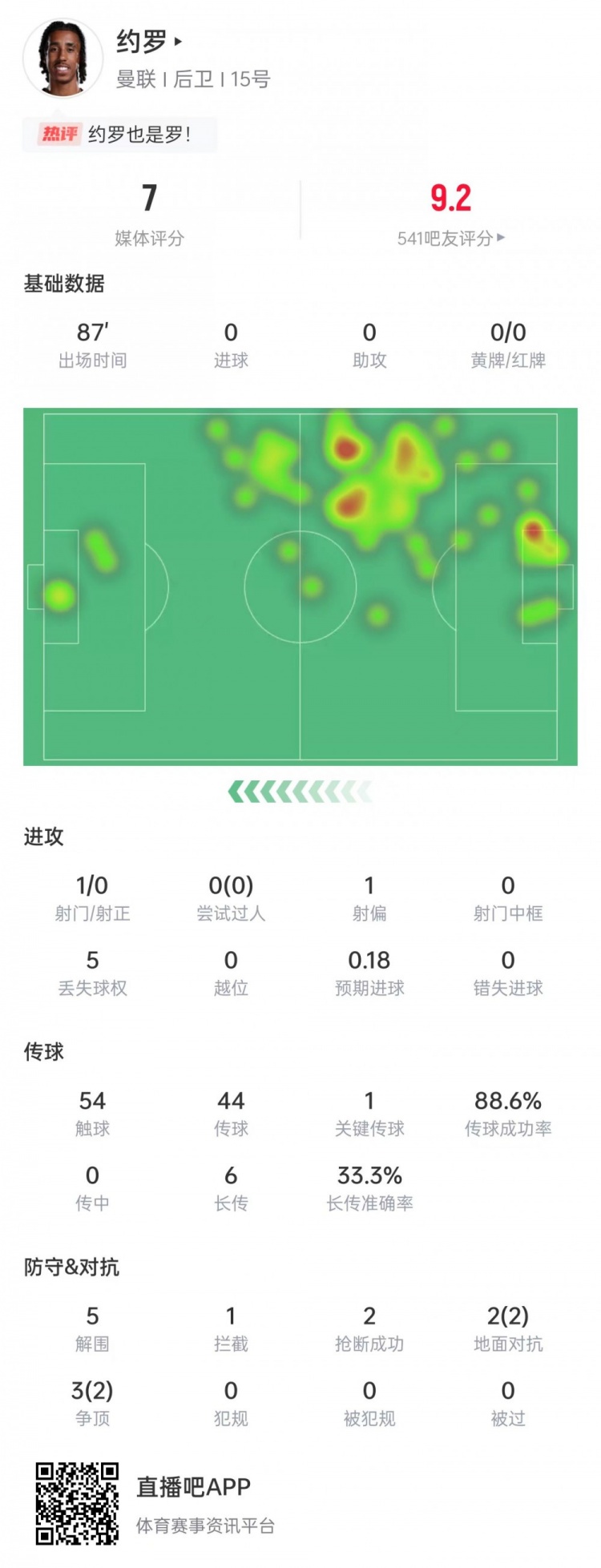 约罗此役为曼联首发出战,并造敌手乌龙,曼联官方证据,他当选本场比赛曼联队内最好球员。