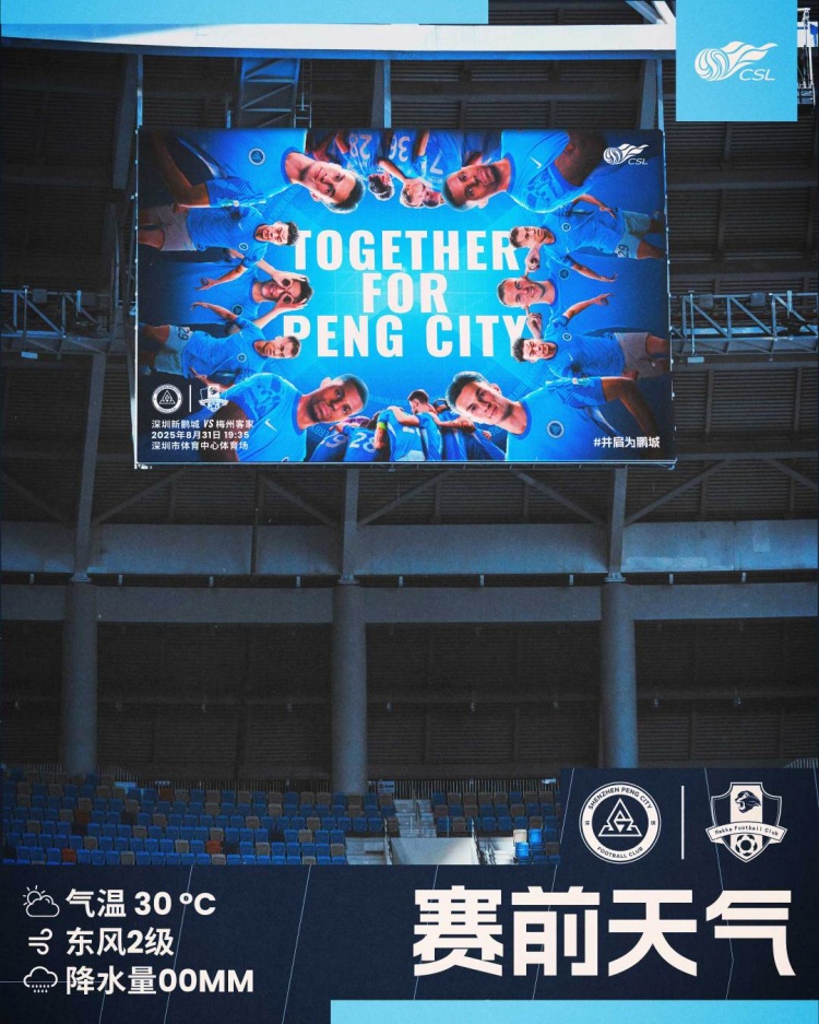 本日深圳主场气温30℃,东风2级,降水量0mm,体感较为盛暑。