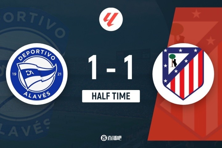 上半场比赛界限,马德里竞技客场暂时1-1战平阿拉维斯。