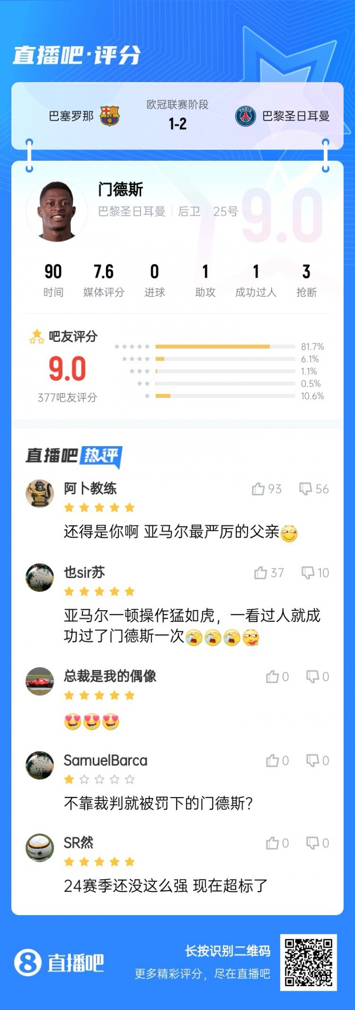 吧友们以为门德斯本场是否收尾了亚马尔的进展?