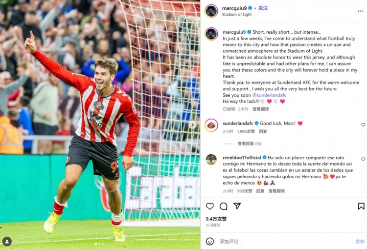 9月2日讯 切尔西先锋吉乌一经提前收场租赁,后者也通过社媒发文牍别桑德兰: